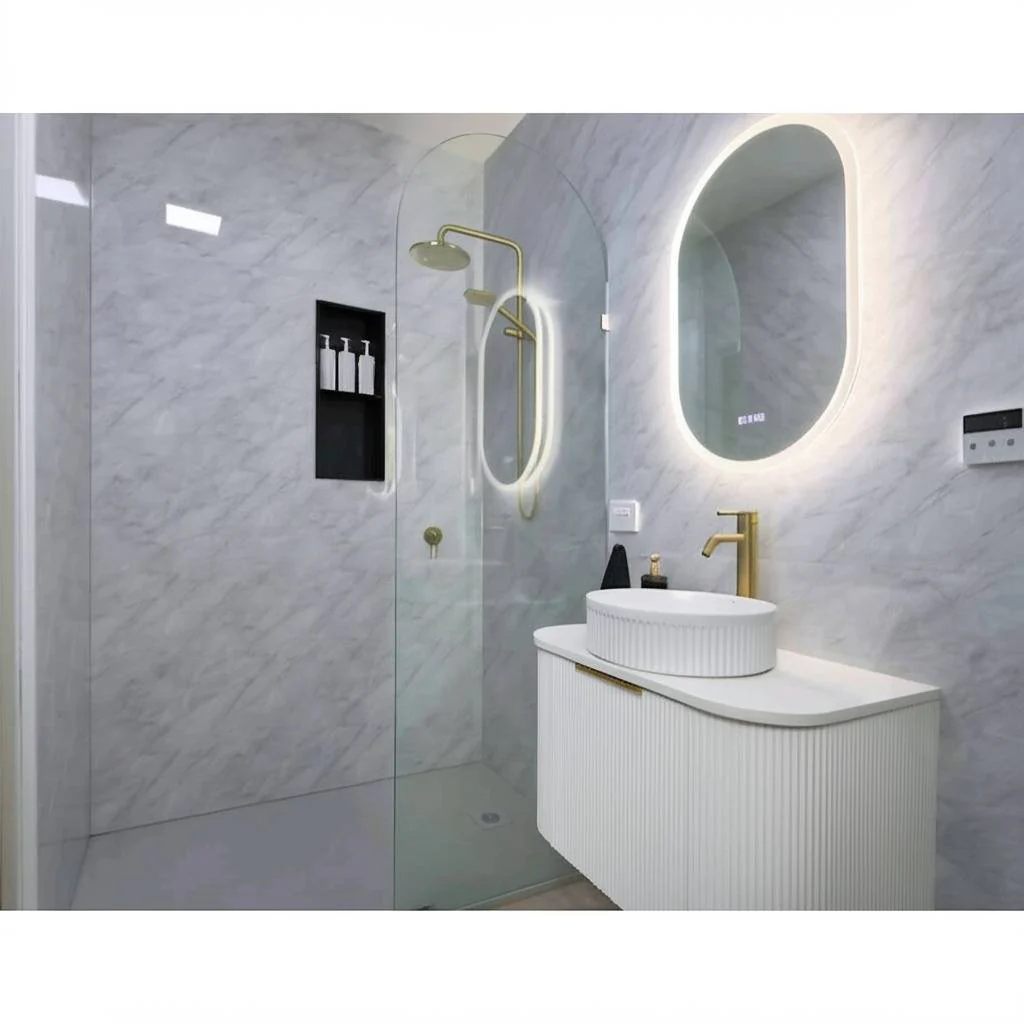 If you’re looking for a sleek and sophisticated look for your bathroom, our Grey Marble Wall Panel is the perfect solution to elevate your bathroom’s aesthetic. Bold, grey veins and warm shadows offset a milky white background to deliver a touch of Italian luxury.